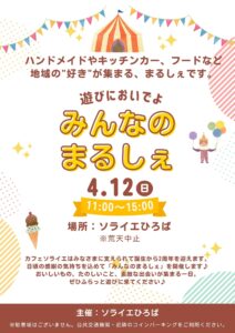 日時:4月12日(日)11:00~15:00場所:そらいえひろば、ものづくり工房…