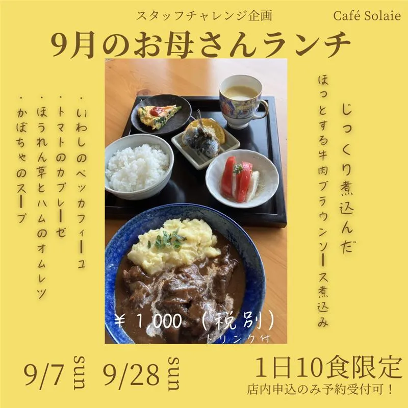 お申し込み方法:カフェソライエ営業時間中にお電話にて。(070-1297-2302)